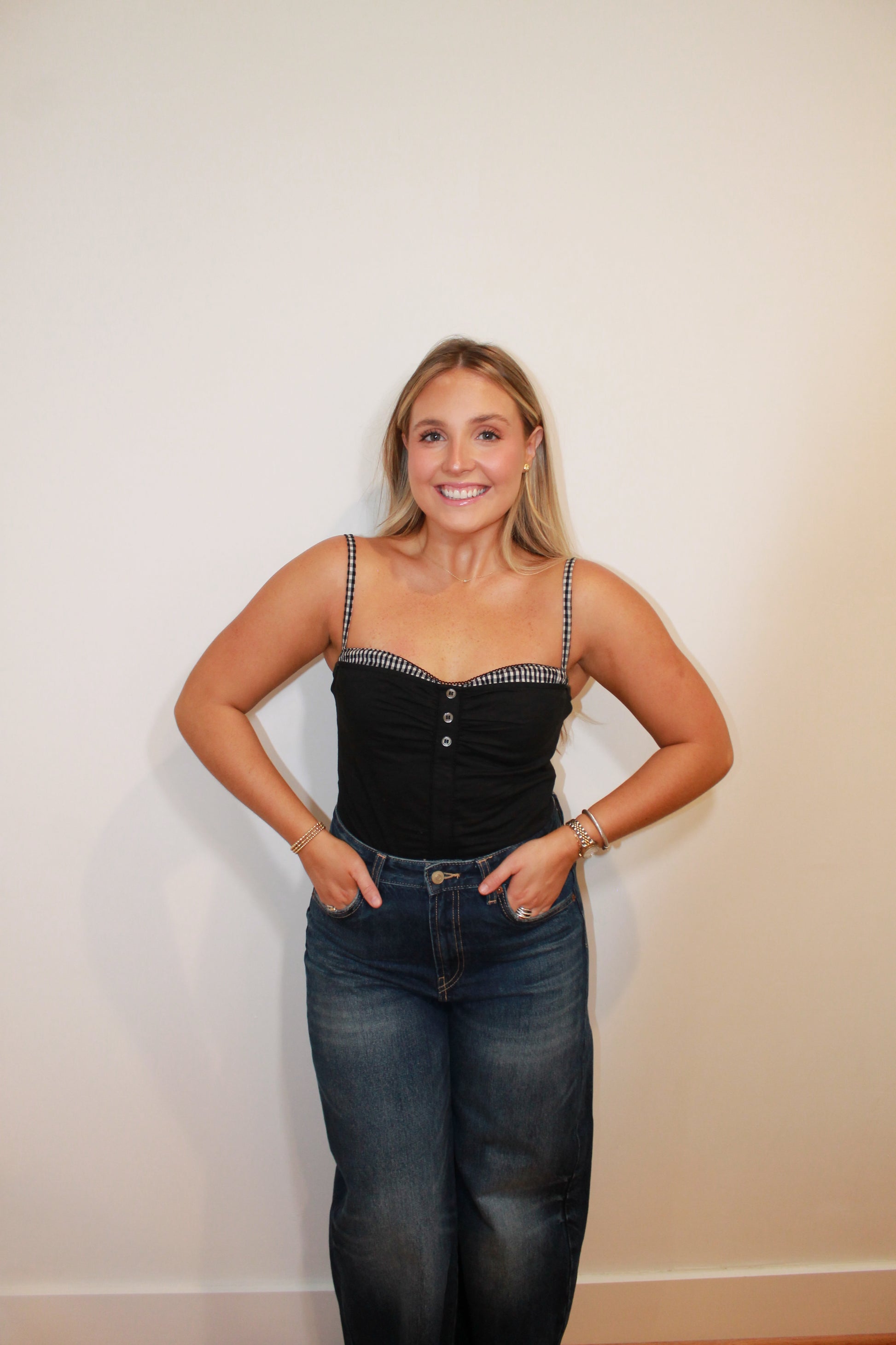 Black Gingham Checkered Top